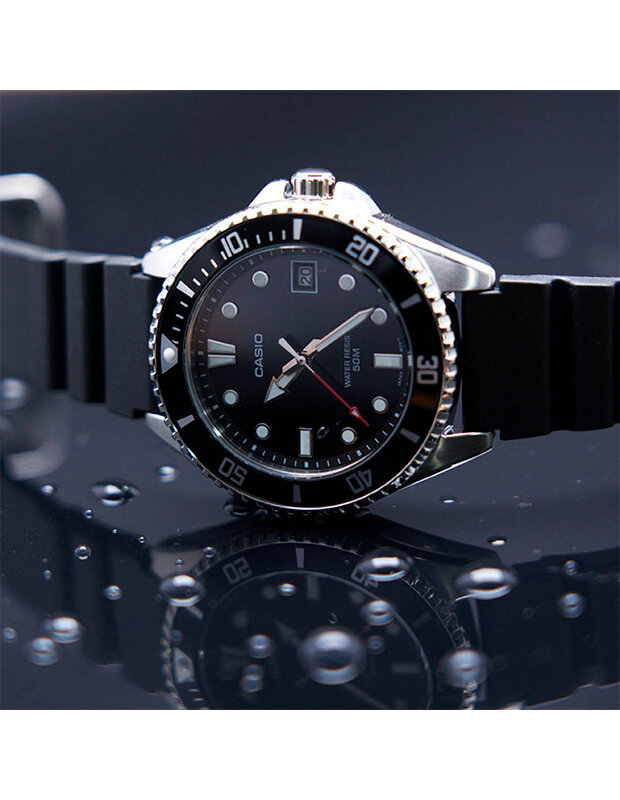 MDV-107D-1A3 Casio наручные часы кварцевые WR200 (20 атм) мужские отображение числа водонепроницаемые, поворотный безель, подсветка стрелок минеральное стекло