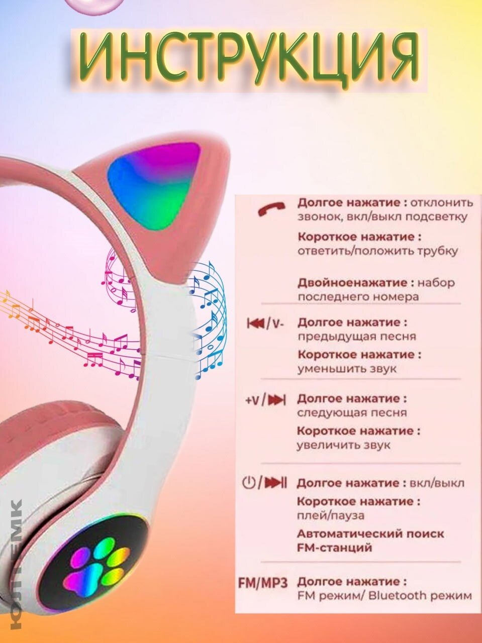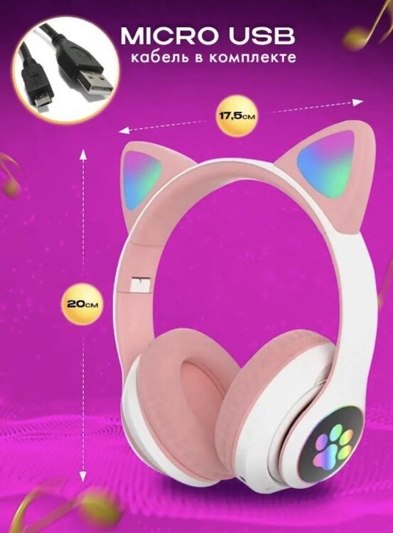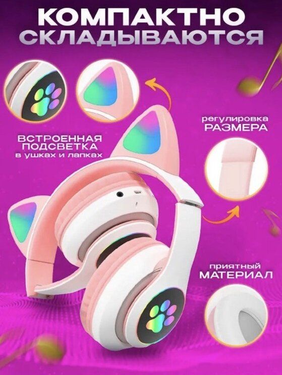 Купить Яркие и стильные наушники с ушками Кошки и разноцветной подсветкой STYLISH/Отличное Hi-Fi Stereo звучание /Мощные басы/Розовый