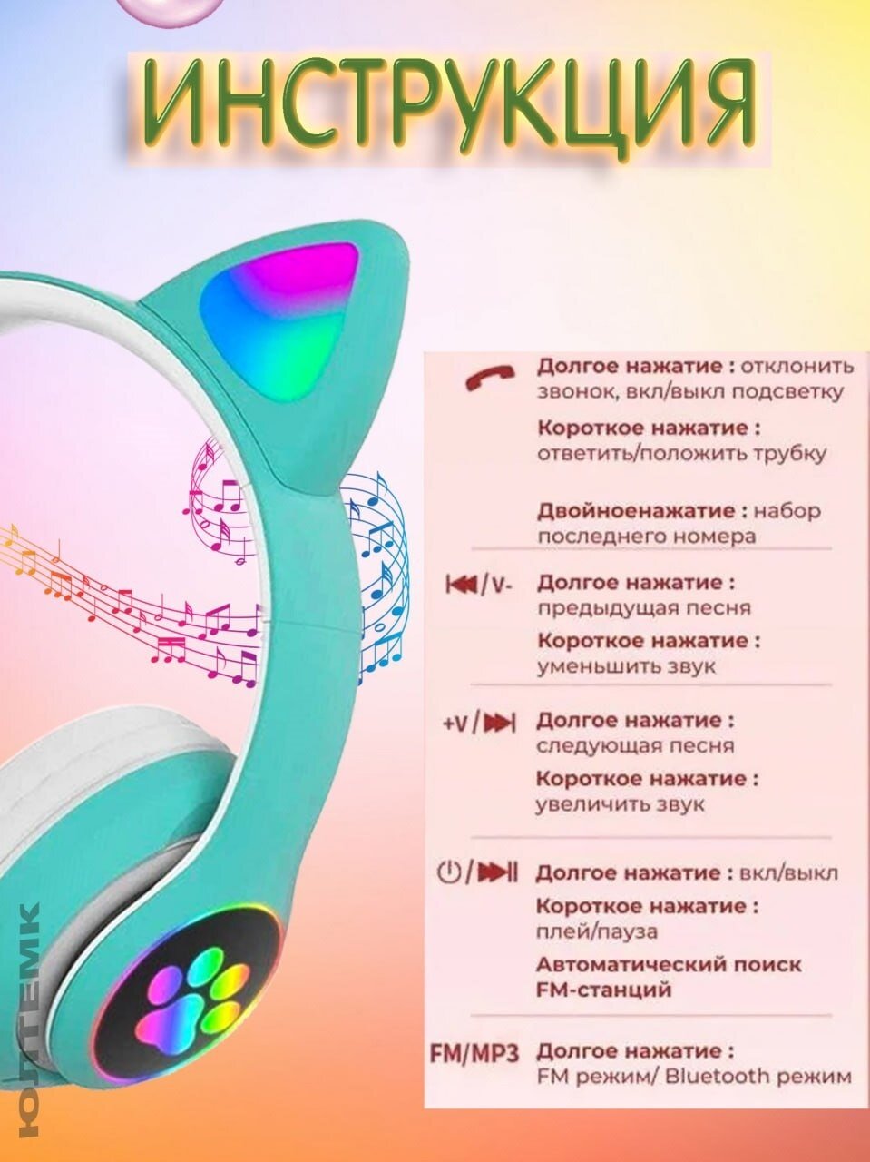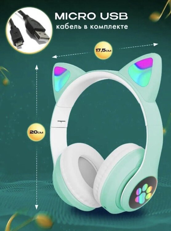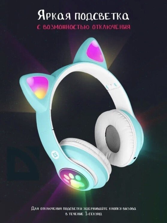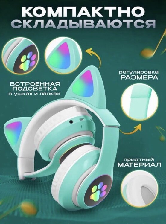Купить Яркие и стильные наушники с ушками Кошки и разноцветной подсветкой STYLISH/Отличное Hi-Fi Stereo звучание /Мощные басы/Зеленые