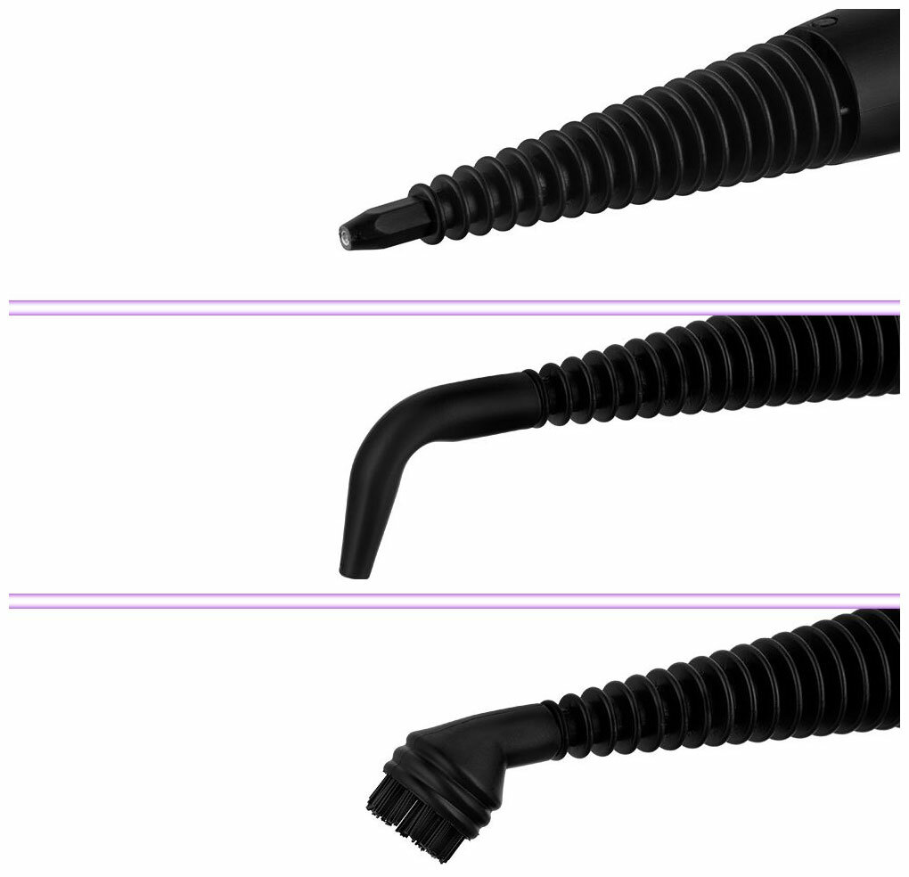 | Плюсы: | Неожиданно мощная струя пара, компактен и удобен в использовании, множество насадок для труднодоступных мест |