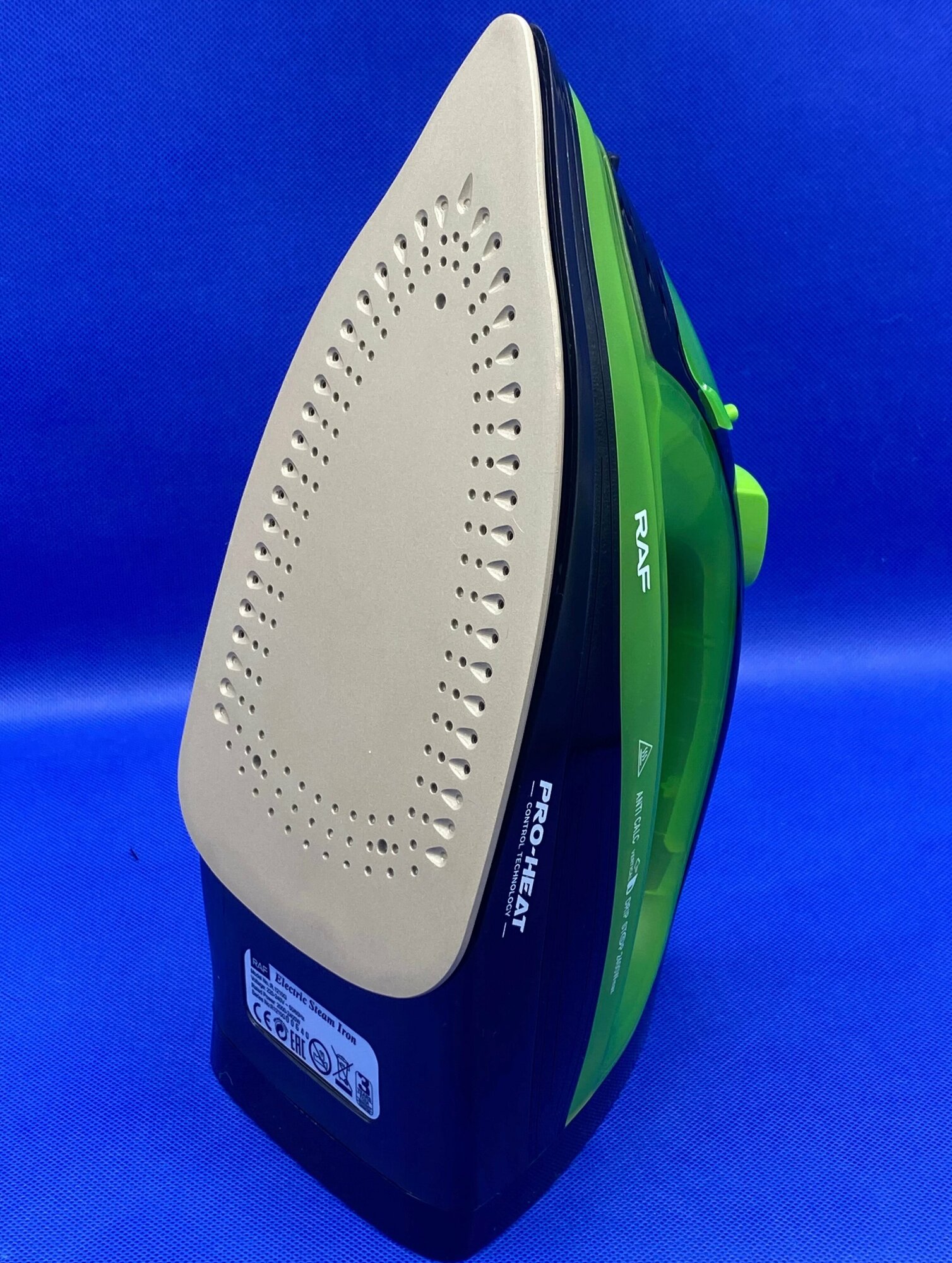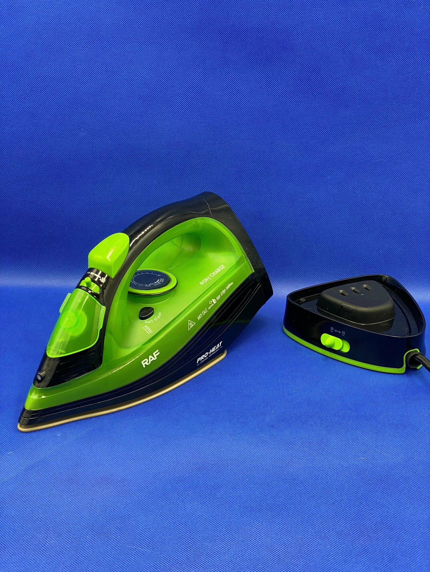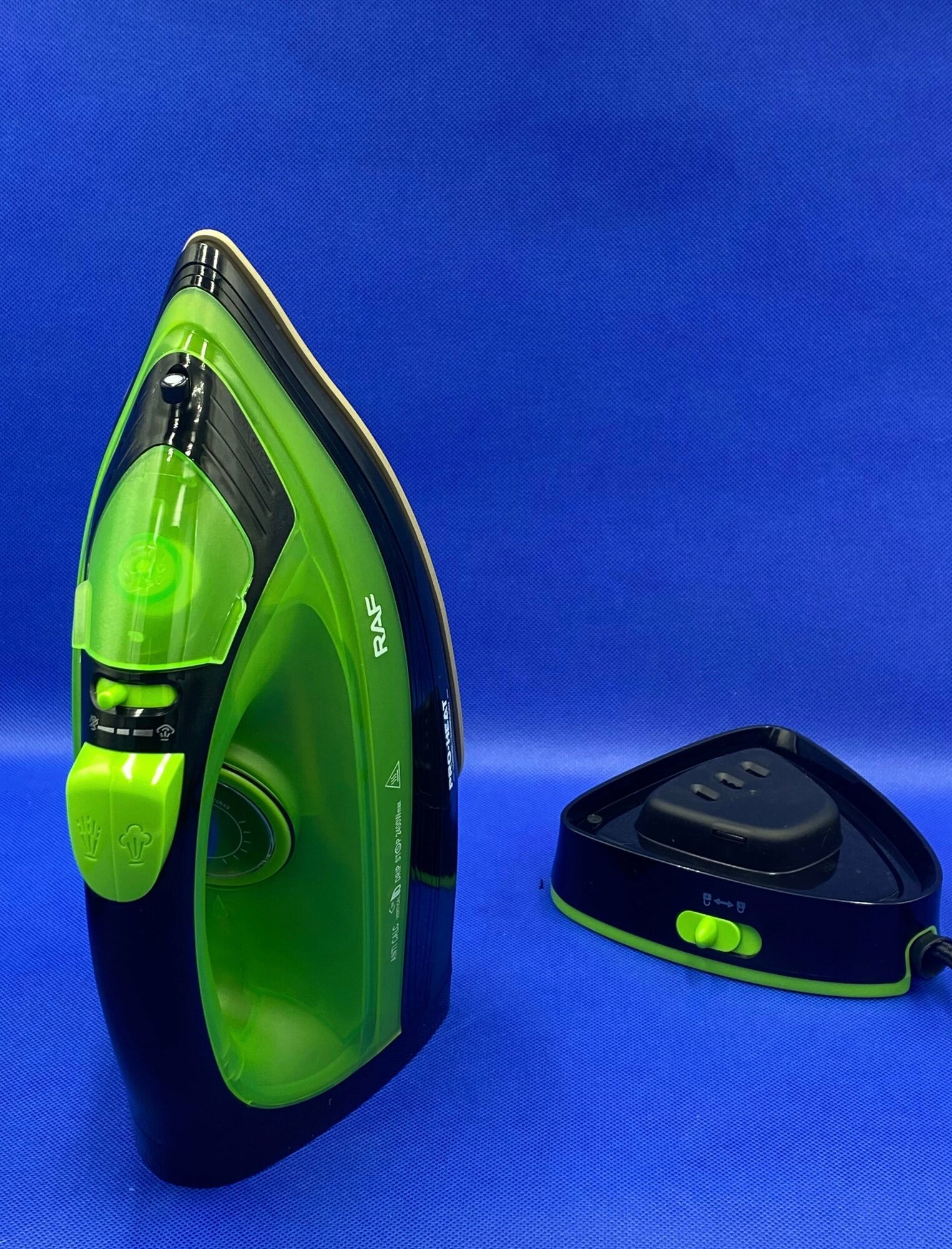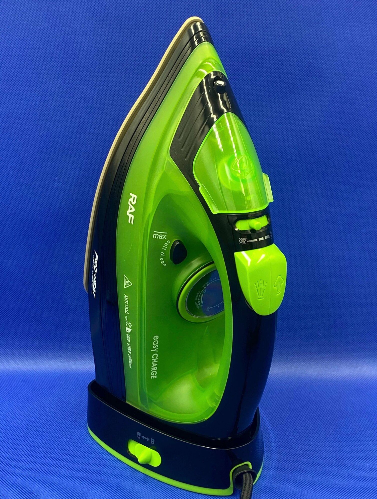 Беспроводной электрический паровой утюг RAF R-1210, 2400 Вт, для одежды, с антипригарной подошвой и функцией самоочистки, зеленый интересное: