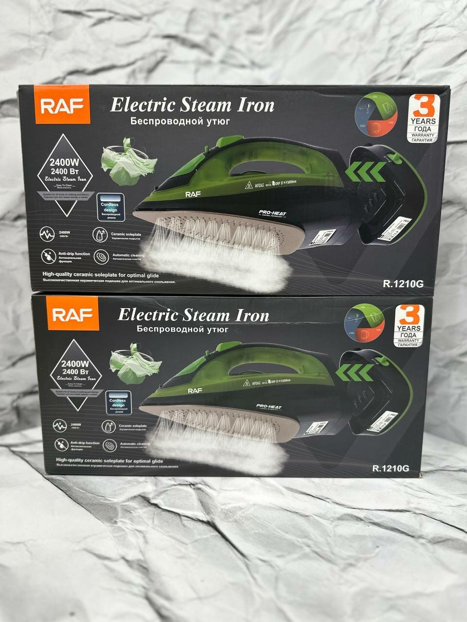 Ниже Вы можете прочитать отзывы на Беспроводной электрический паровой утюг RAF R-1210, 2400 Вт, для одежды, с антипригарной подошвой и функцией самоочистки, зеленый, ознакомится с подробными характеристиками, посмотреть интересные обзоры и фотографии на Беспроводной электрический паровой утюг RAF R-1210, 2400 Вт, для одежды, с антипригарной подошвой и функцией самоочистки, зеленый.