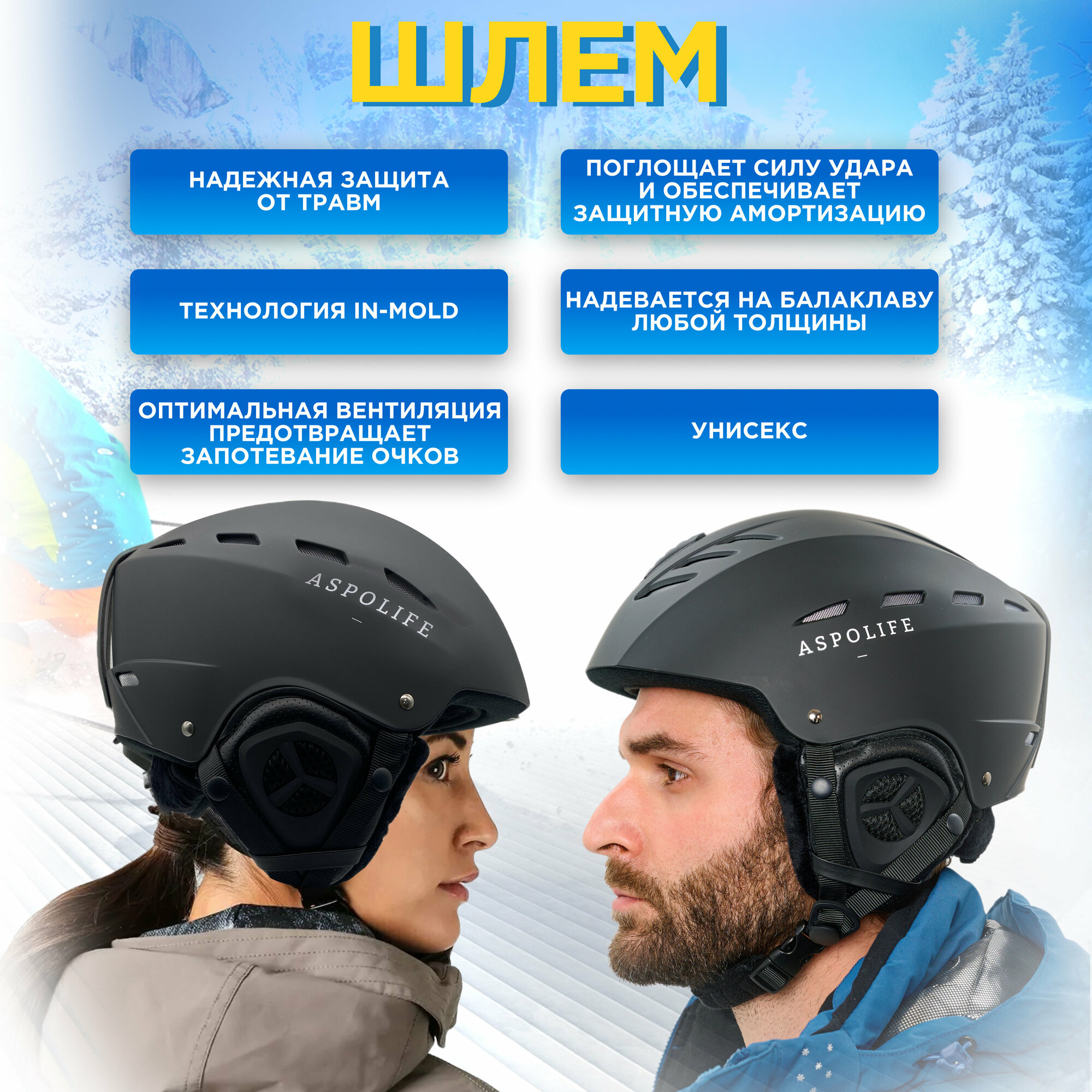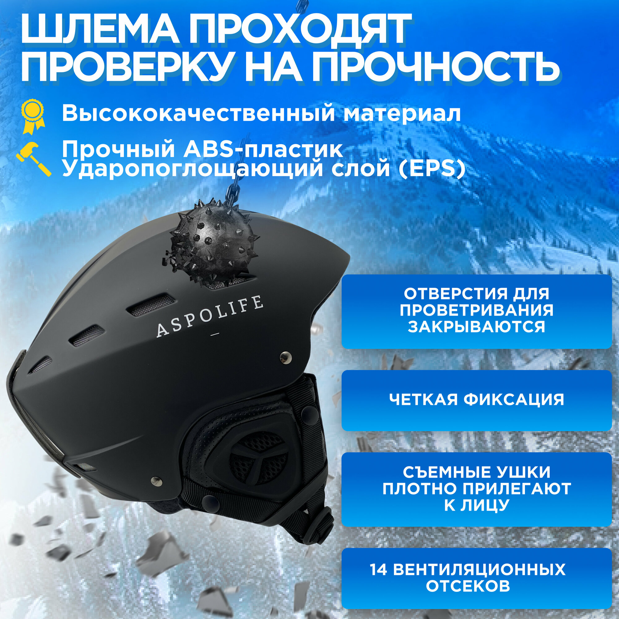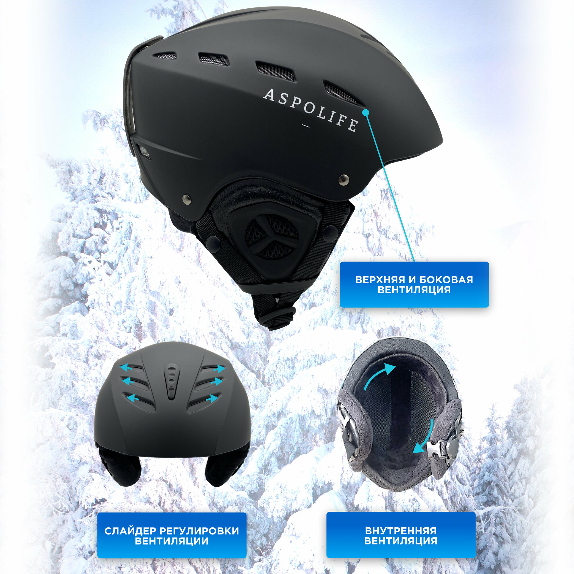 Горнолыжный защитный шлем для активного отдыха Aspolife размер L интересное: