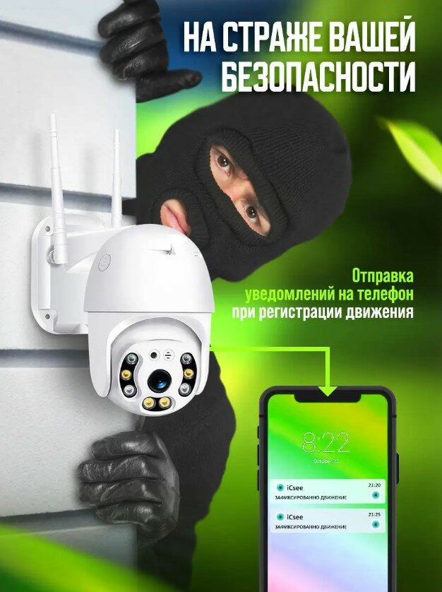 Уличная ip камера видеонаблюдения Wi-Fi / Видеокамера / Скрытая камера видеонаблюдения / вайфай камера с микрофоном для дома /Видео камера/белая интересное:
