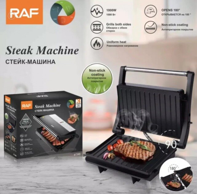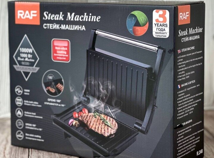 Электрогриль черная RAF R-240, 1000вт , стейк-машина, Гриль электрический, антипригарное покрытие интересное: