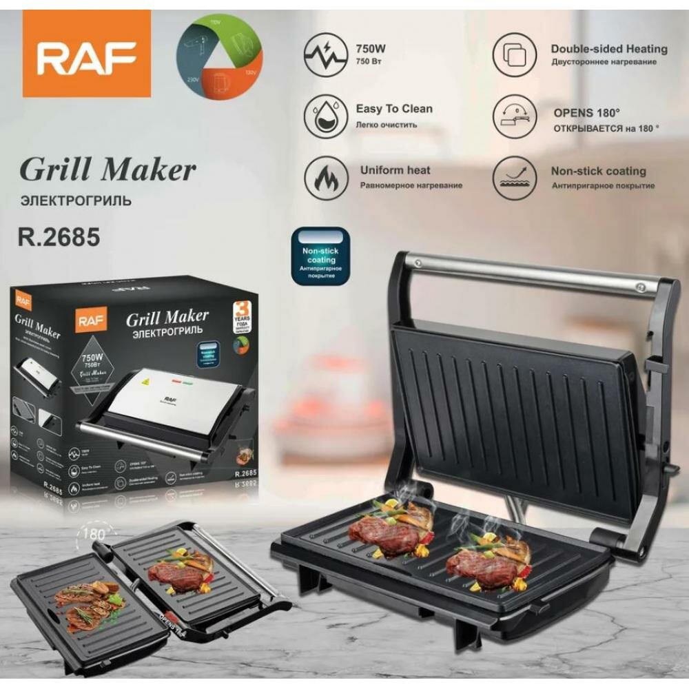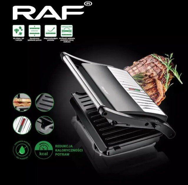 Купить Электрогриль черная RAF R-240, 1000вт , стейк-машина, Гриль электрический, антипригарное покрытие
