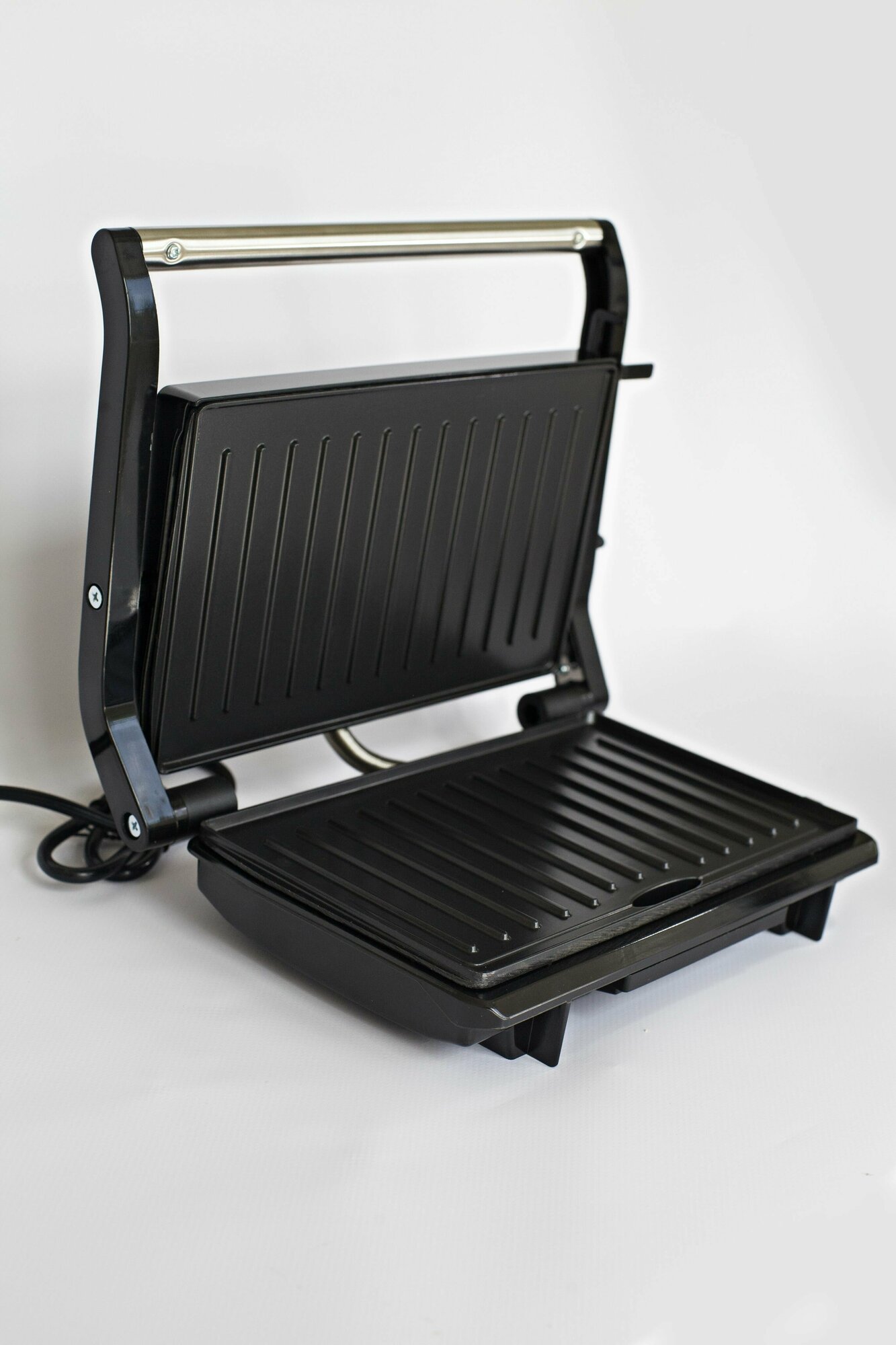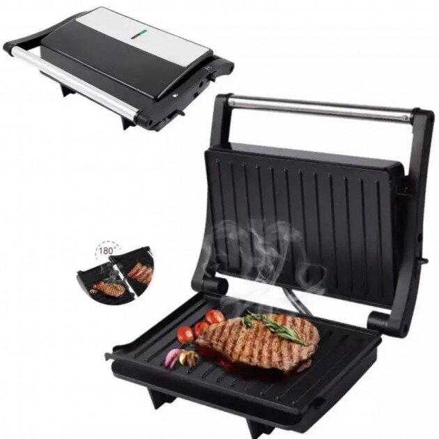 | Дополнительная информация | Обжарка с обеих сторон, равномерное нагревание, открывается на 180*, антипригарное покрытие |