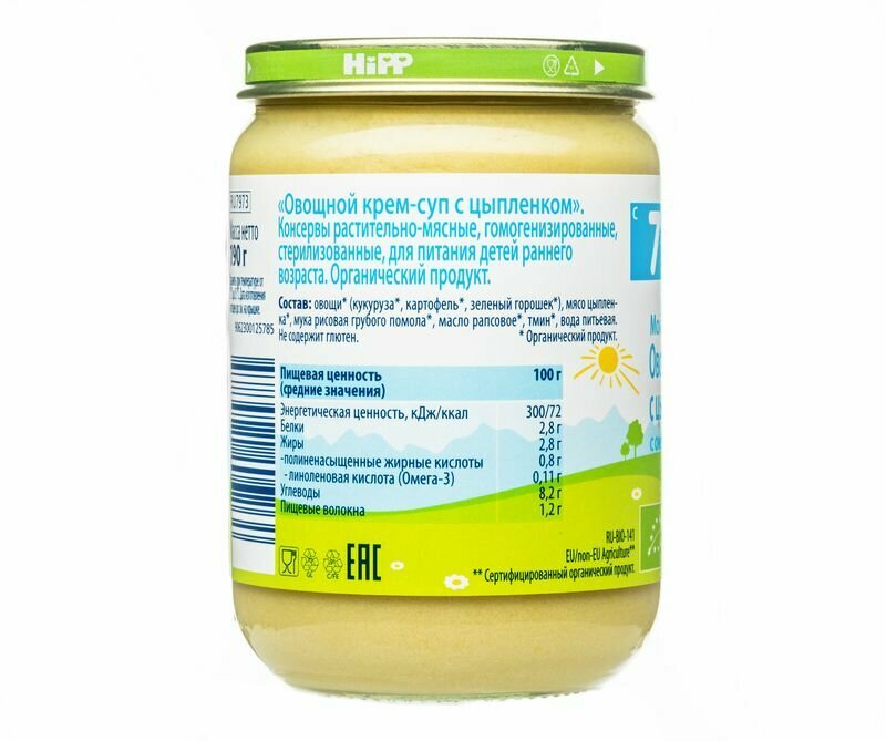Органический овощной крем-суп с цыпленком 190гр/1шт интересное: