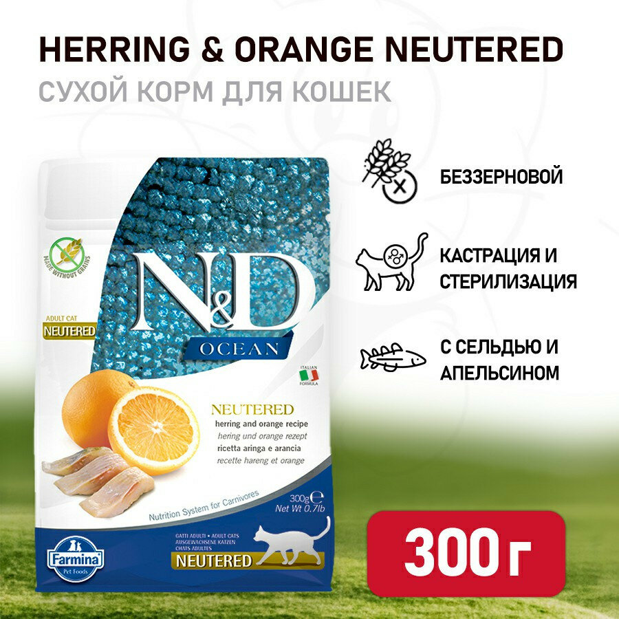 Farmina N&D Ocean Cat Herring And Orange Neutered Adult сухой беззерновой корм для стерилизованных кошек с сельдью и апельсином - 300 г интересное: