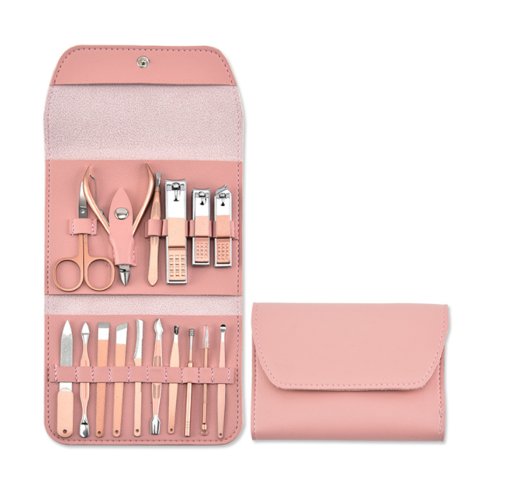 Профессиональный маникюрный набор из 16 предметов MyPads A156-950 из нержавеющей стали с бежевым матовым покрытием стильным чехлом розовый