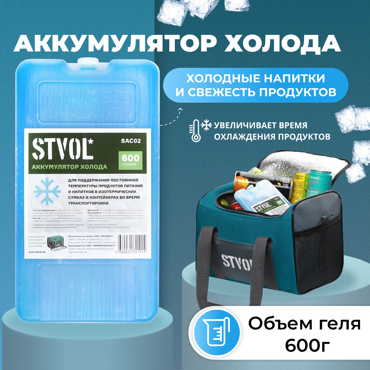 К-кт термосумка 12 литров+аккумулятор холода 600 г. (SRB01+SAC02), STVOL STK01 (1 шт.)