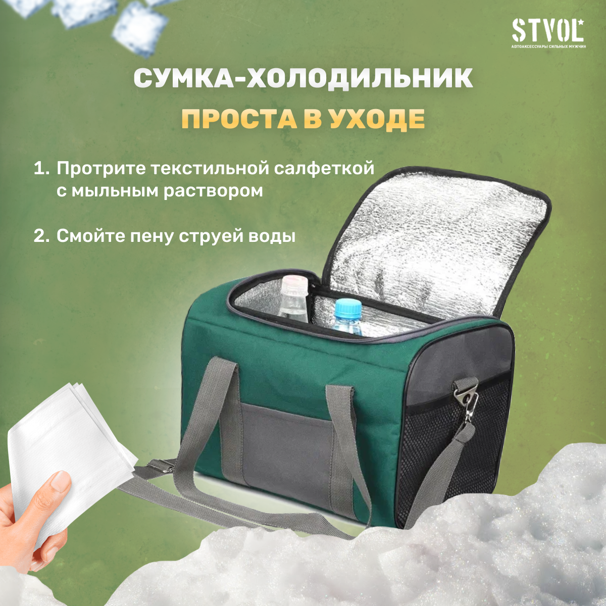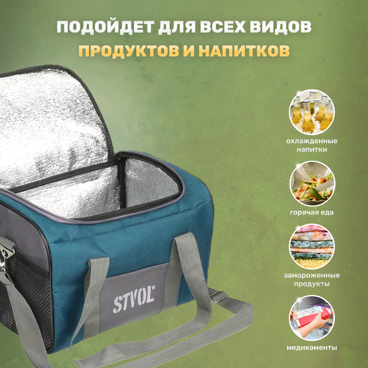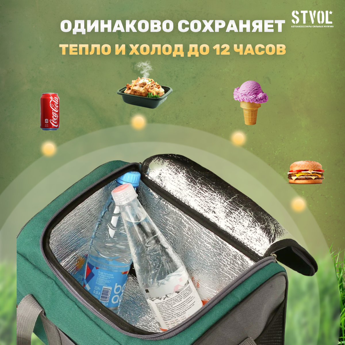 Термосумка, сумка холодильник STVOL STK01, 12 л, c аккумулятором холода (1 шт) 30х22х22 см интересное: