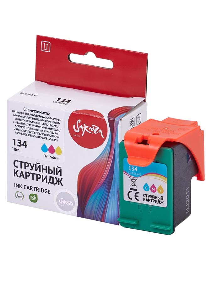 Картридж 134 для HP PhotoSmart 2573, PSC 2353, OfficeJet K7103 C9363HE Sakura цветной интересное:
