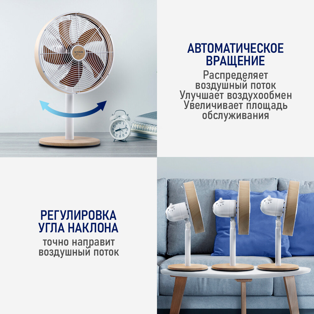 Настольный вентилятор STINGRAY ST-FN4115A белый/дерево интересное: