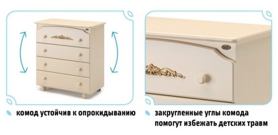 | Отзыв: | Долго же мы подбирали комод, который впишется в наш интерьер и при этом будет качественно изготовлен. Пока нам на глаза не попалась эта модель. Выглядит стильно, имеет четыре вместительных ящика для белья. Ящики удобный, открываются и закрываются без шумно. На ребенок не любит, когда его пеленают, поэтому мы на нем переодеваемся, что тоже удобно. Рекомендую. |