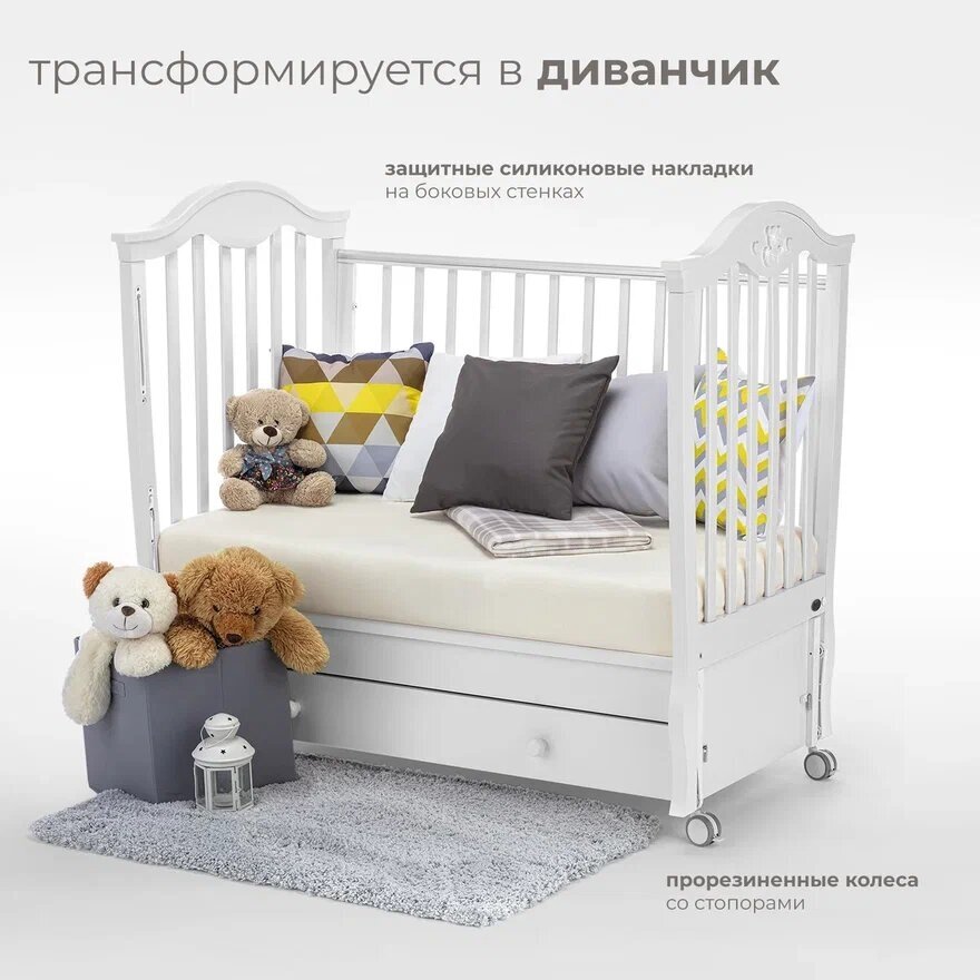 ВДК Детская кровать-трансформер «Слоник» с поперечным маятником, цвет белый