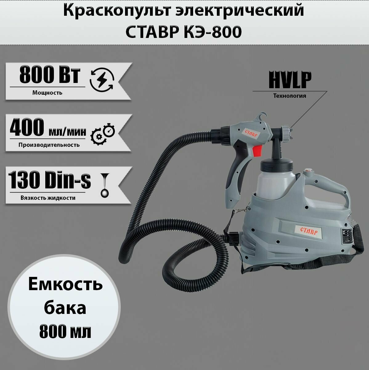 Краскопульт электрический ставр КЭ-800 400 мл/мин, серый