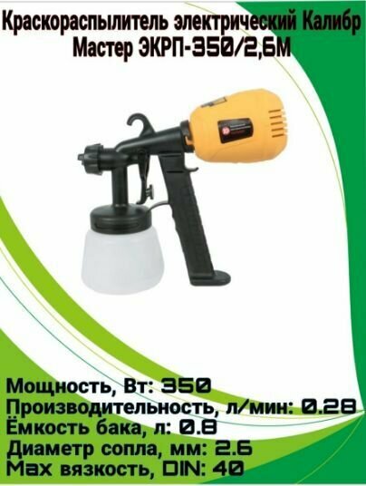 Эл. краскопульт "калибр мастер ЭКРП-350/2,6М" (350ВТ, 0,8Л.)