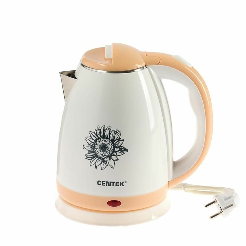 Чайник Centek CT-1026 BG (бежевый + рисунок) 1.5л, 2000W, двухслойный корпус - металл внутри и пласт
