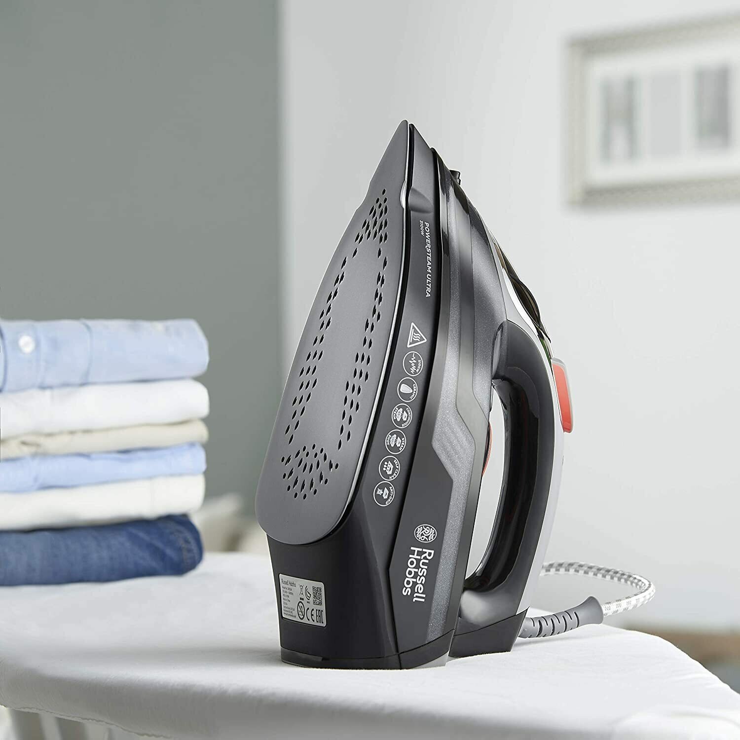 Утюг Russell Hobbs Power Steam Ultra 20630-56 (2063056) специальная подошва с желобками для пуговиц, паровой удар 210г/мин, 3-х стороннее автоматическое отключение интересное: