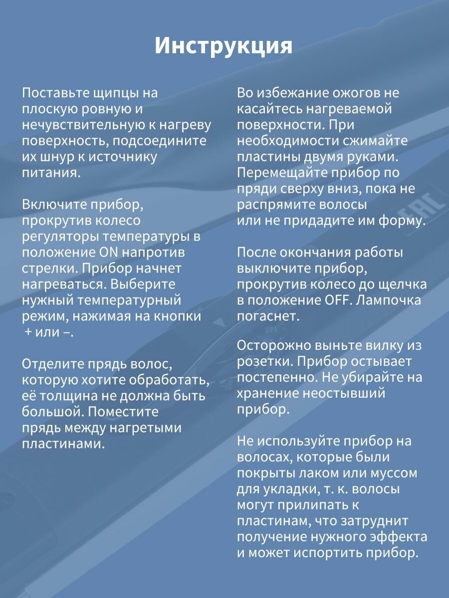 | Дополнительная информация | размер пластин 20*90мм, автоматическое выключение через 60 минут бездействия |