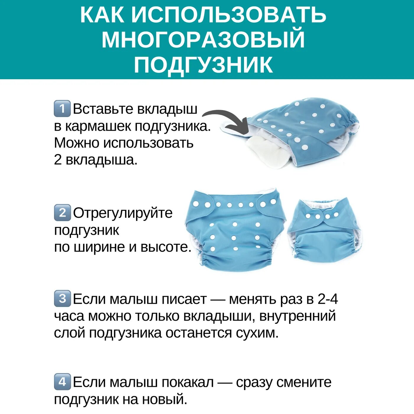 | Отзыв: | На ребёнка 80 см и 11 кг подошел с запасом. Надевала на ночь, внутренняя часть подгузника казалась сухой даже после пописа, хотя вкладыш был полностью пропитан, внешняя часть была сухой также. Не страшно надевать на улицу. Внимание!! Если вы привыкли не менять подгузник по несколько часов, то возможно вам не подойдёт многоразовый. Но , если менять после каждого пописа, как и полагается, то это прекрасная альтернатива тысячам выброшенных подгузников, засоряющих природу и отнимающих много денег. |