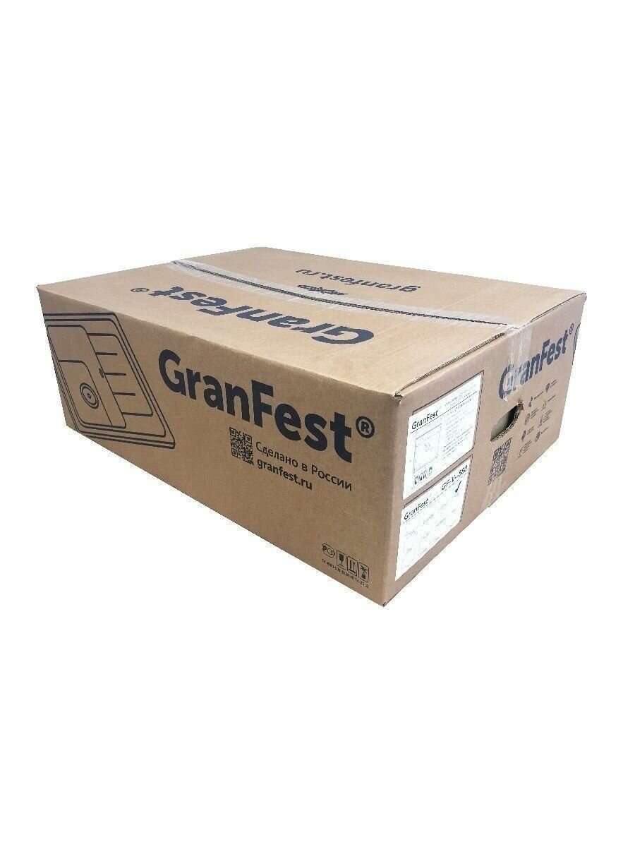 Кухонная мраморная мойка Granfest QUADRO GF-Q610K, 1,5-чашевая, прямоугольная, оборачиваемая, 610*500 мм, цвет серый/Раковина для кухни