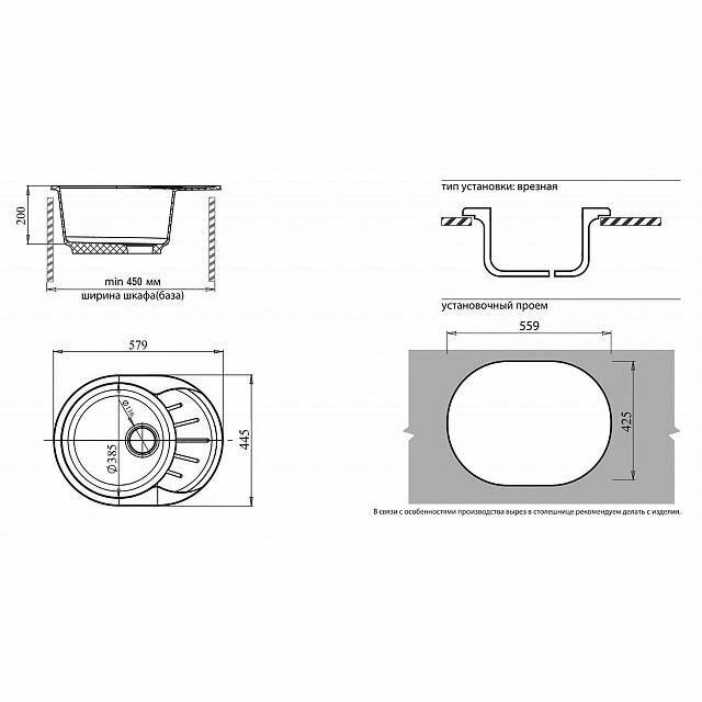 Мойка GranFest мрамор RONDO GF-R-580L чаша с крылом 579*445 мм черный