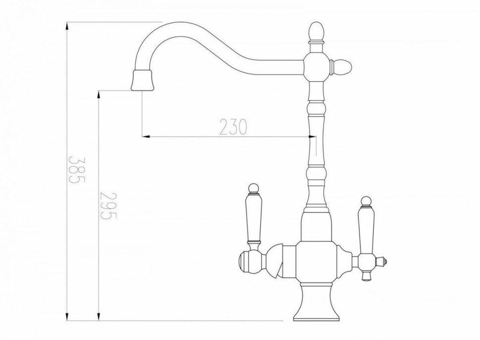 Смеситель для кухни под фильтр ZorG ZR 336 YF-50, хром полированный, ручки керамика с орнаментом, 2в1, ретро