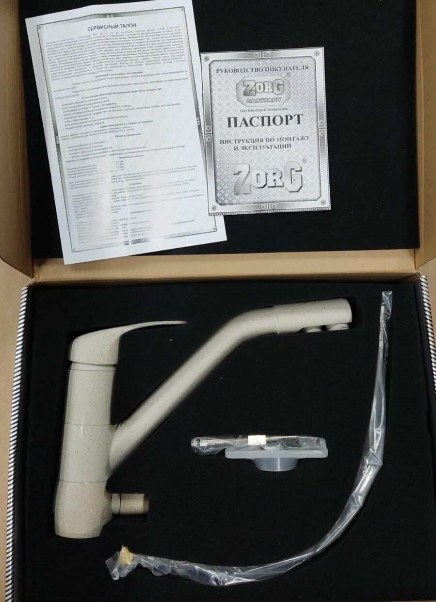 Смеситель под фильтр ZorG Sanitary ZR 400 KF-12 кварц, бежевый под гранит, для мойки, ручка сверху