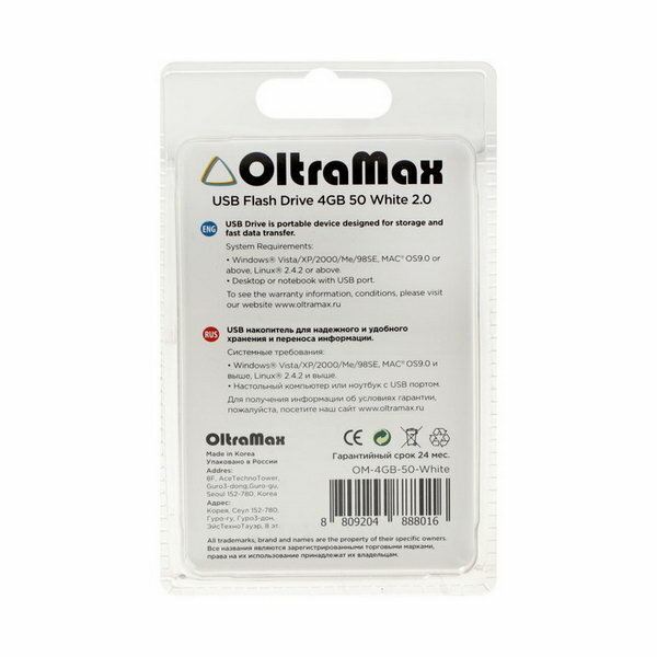 Купить Флэш-накопитель OLTRAMAX 4GB 50, USB 2.0, белый