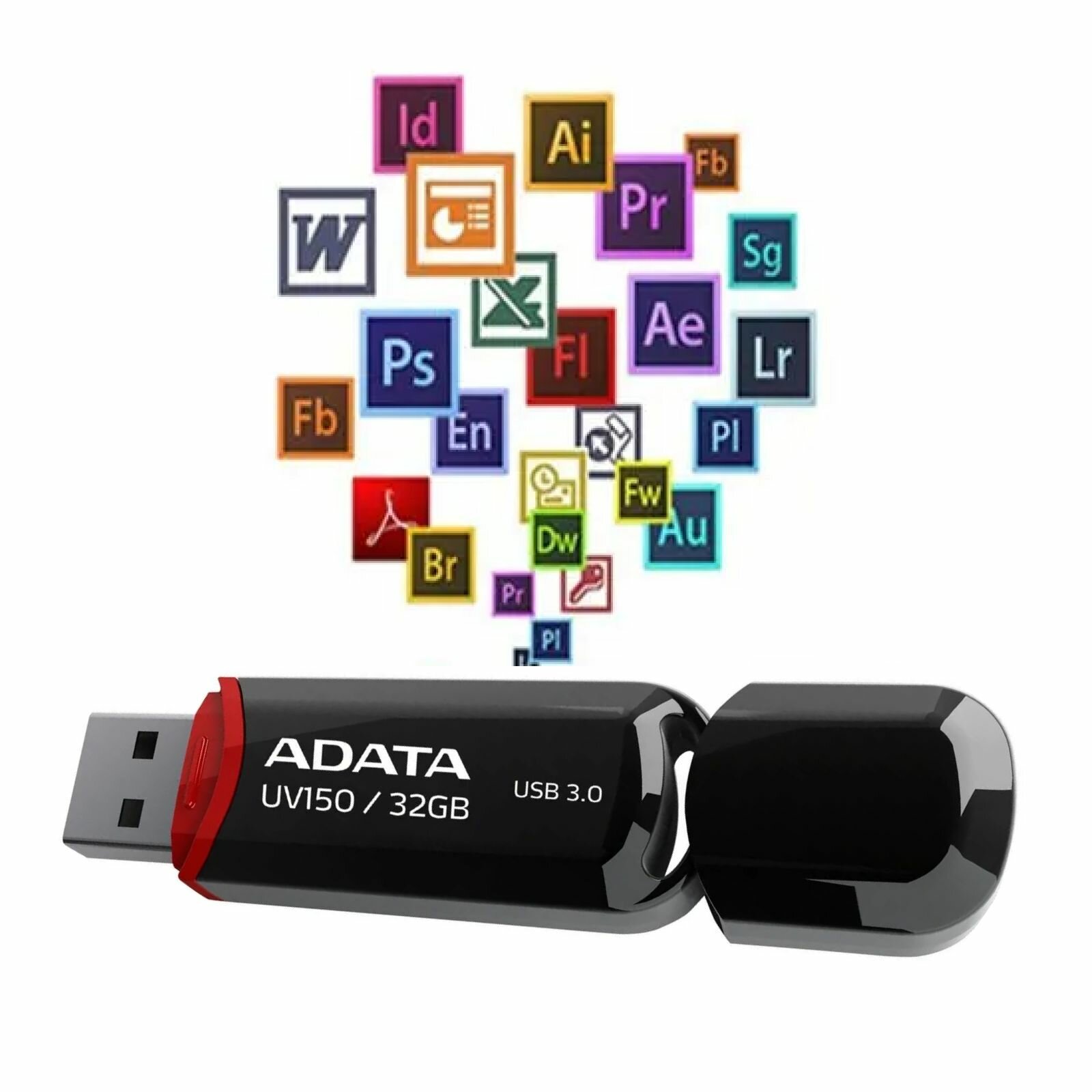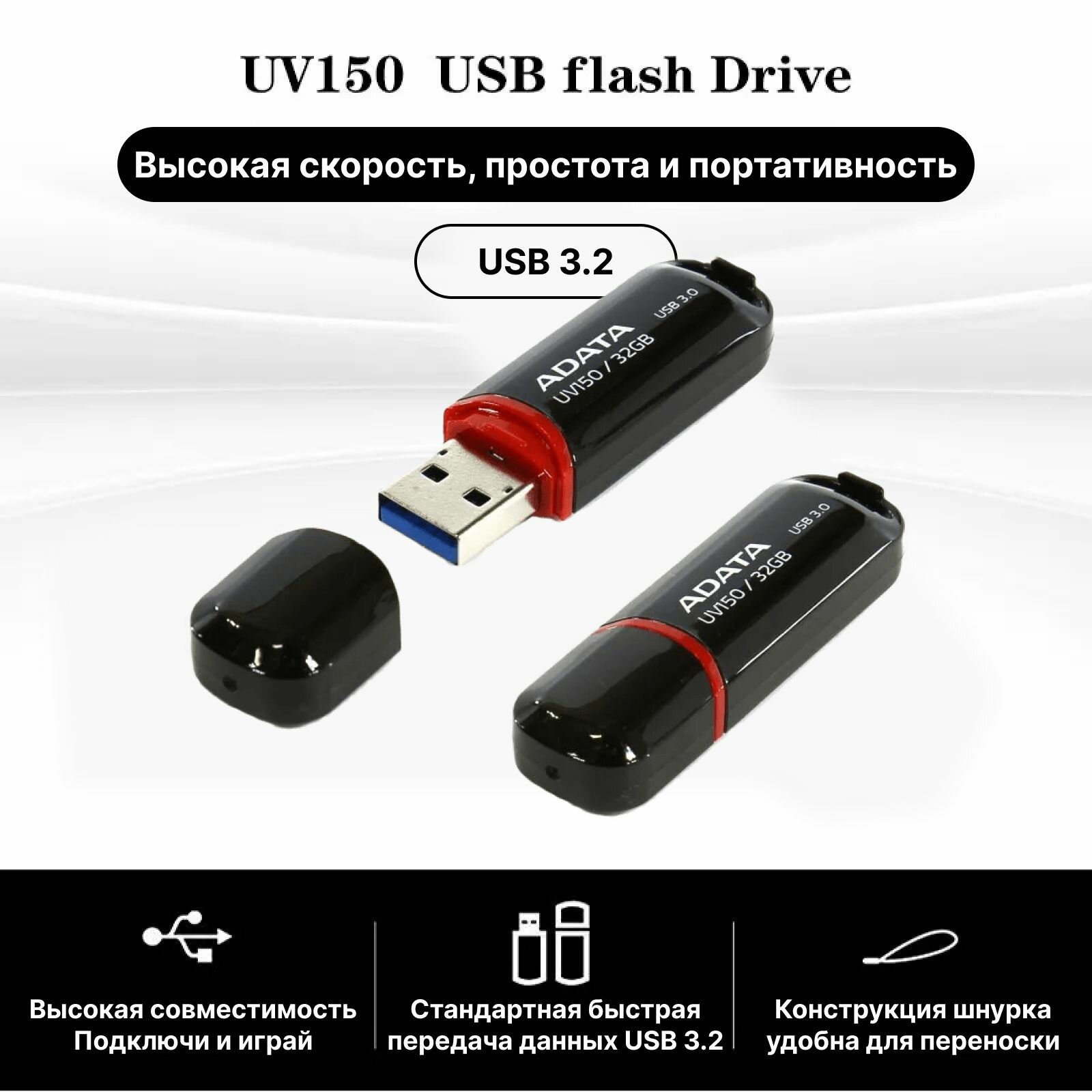 Накопитель USB flash ADATA Накопитель USB flash 32ГБ ADATA FlashDrive UV150 AUV150-32G-RBK, черный (USB3.2) (ret)