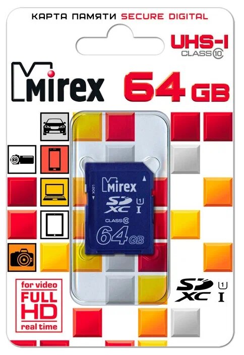 Карта памяти SDXC Mirex 64 Гб класс 10 UHS-I Secure Digital flash card