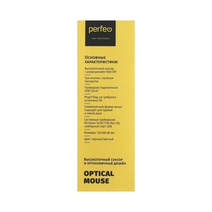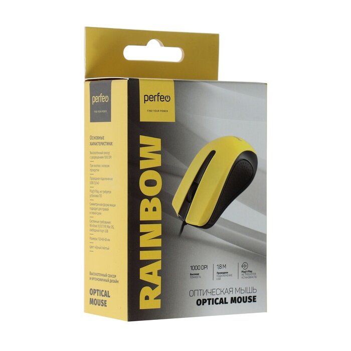 Мышь компьютерная PERFEO (PF-3443) RAINBOW, черный/желтый 955604