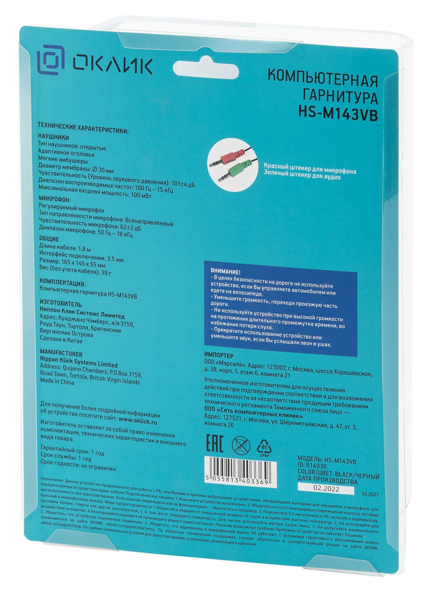 Гарнитура Оклик Oklick HS-M143VB (614036)