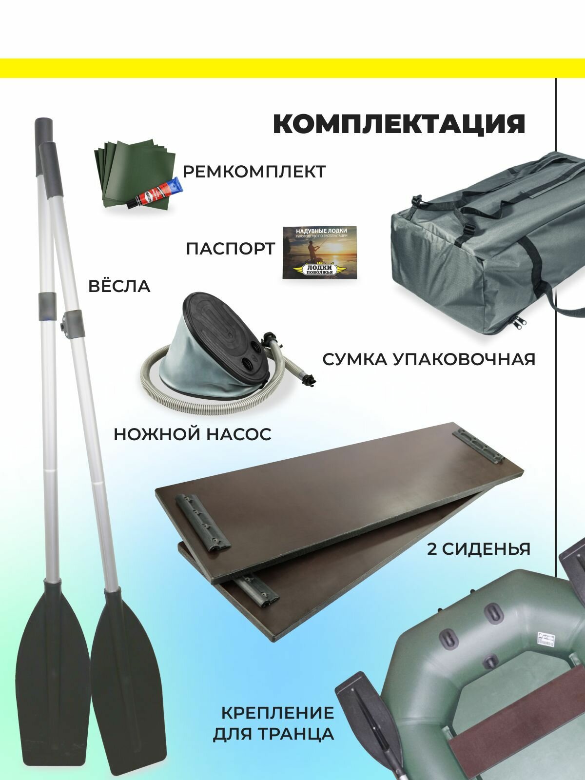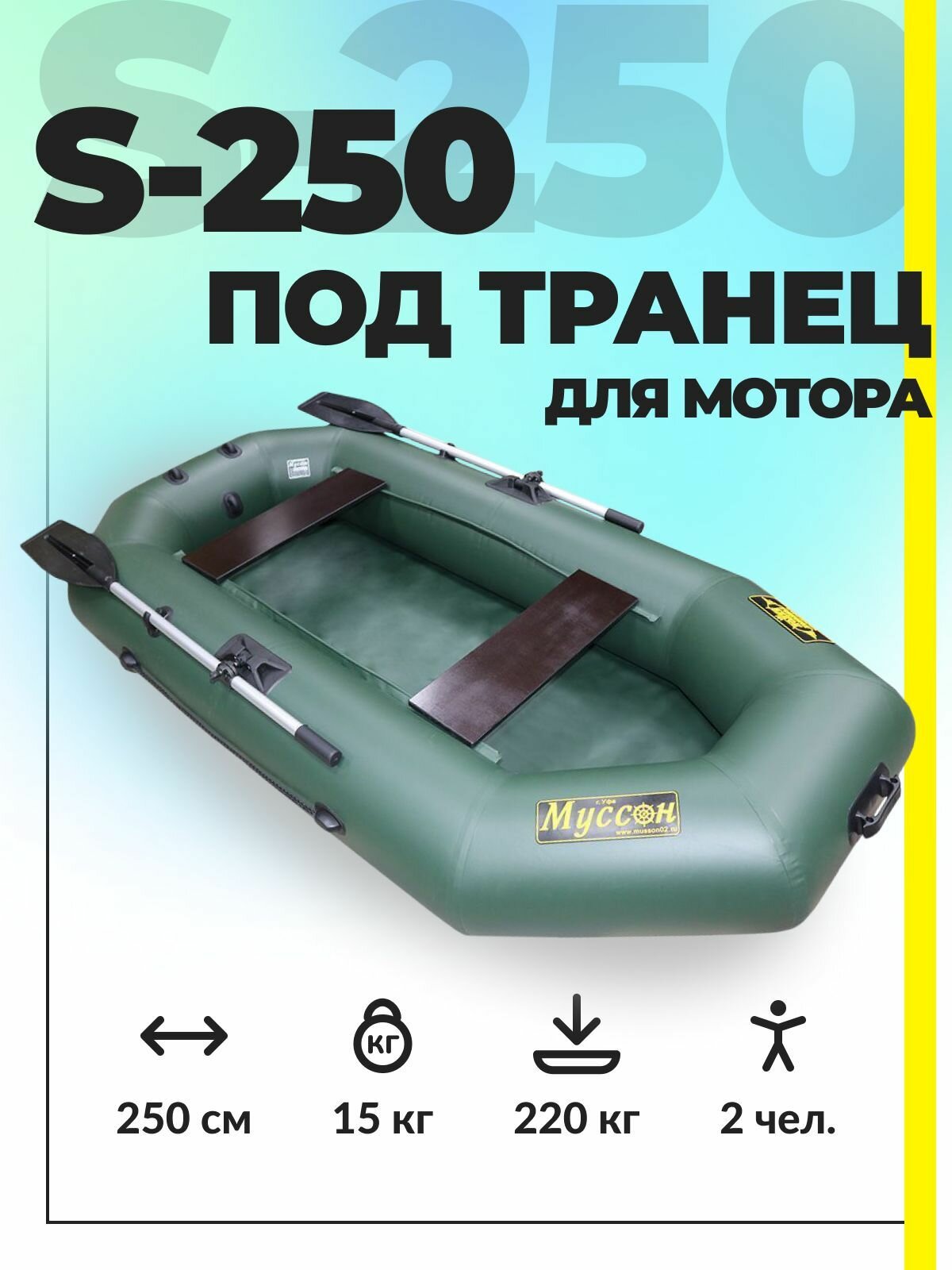 Лодка ПВХ надувная для рыбалки Муссон S-250 / зеленая интересное: