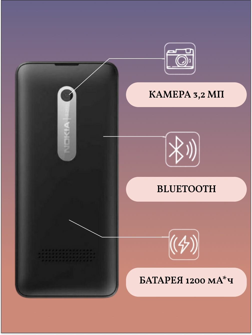 | Плюсы: | Отличный телефон. Легендарное качество Nokia. 2 sim, 3G, хорошая батарейка. |