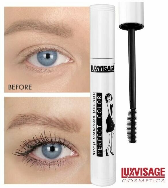 LUXVISAGE Тушь для ресниц LUXVISAGE Perfect Color Веер пышных ресниц черная, 4811329017114