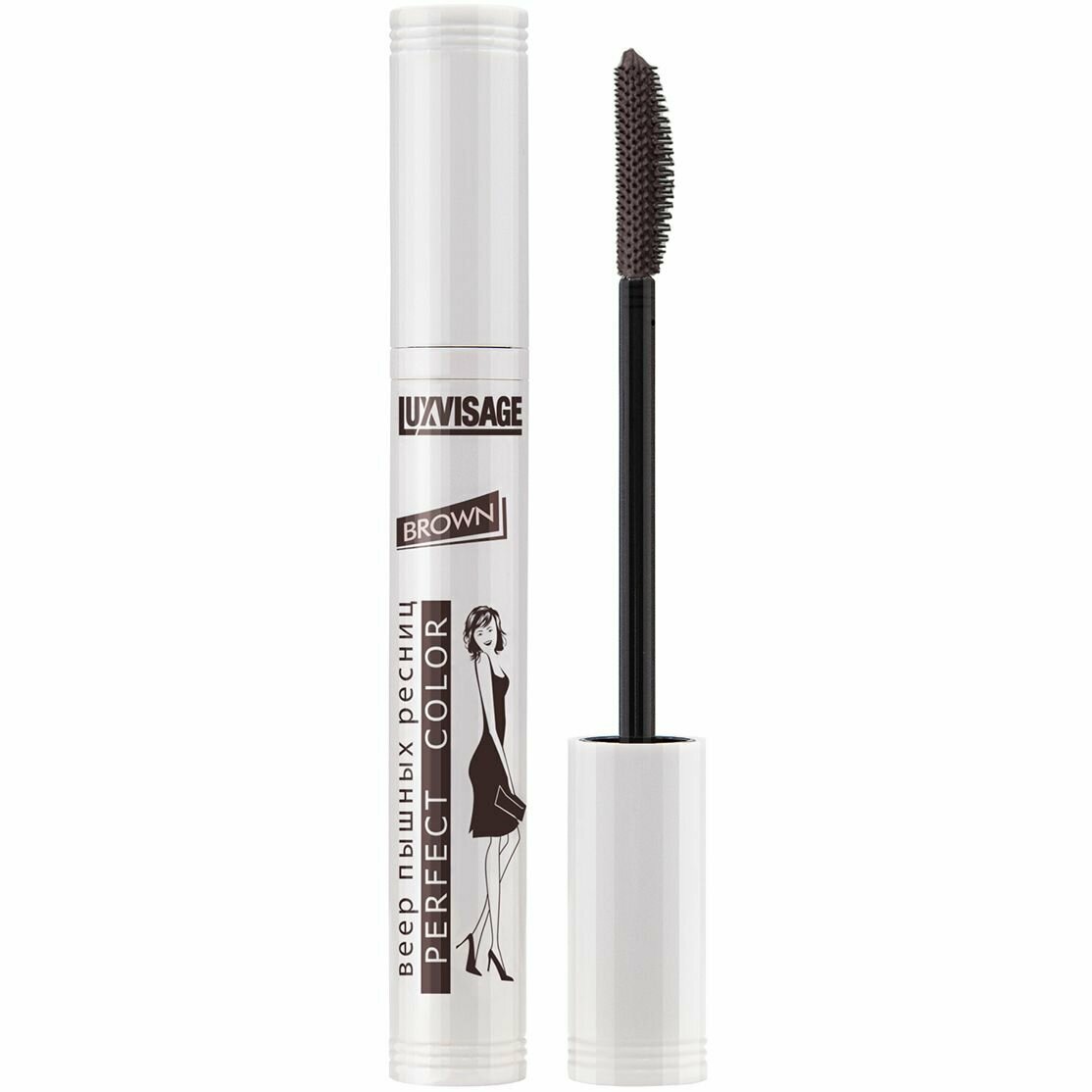 LUXVISAGE Тушь для ресниц PERFECT COLOR веер пышных ресниц коричневая, 9 мл