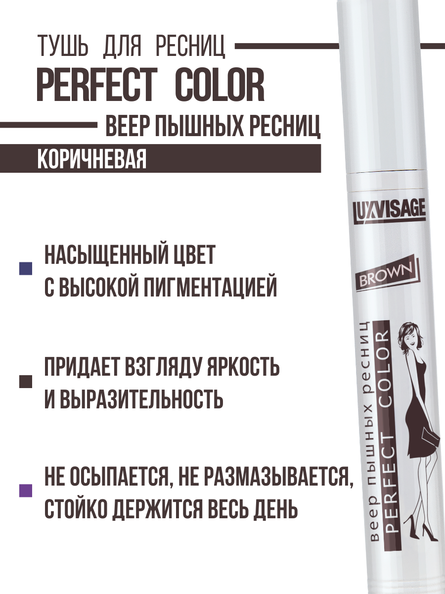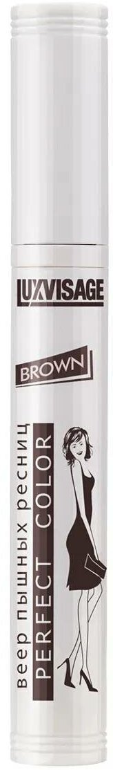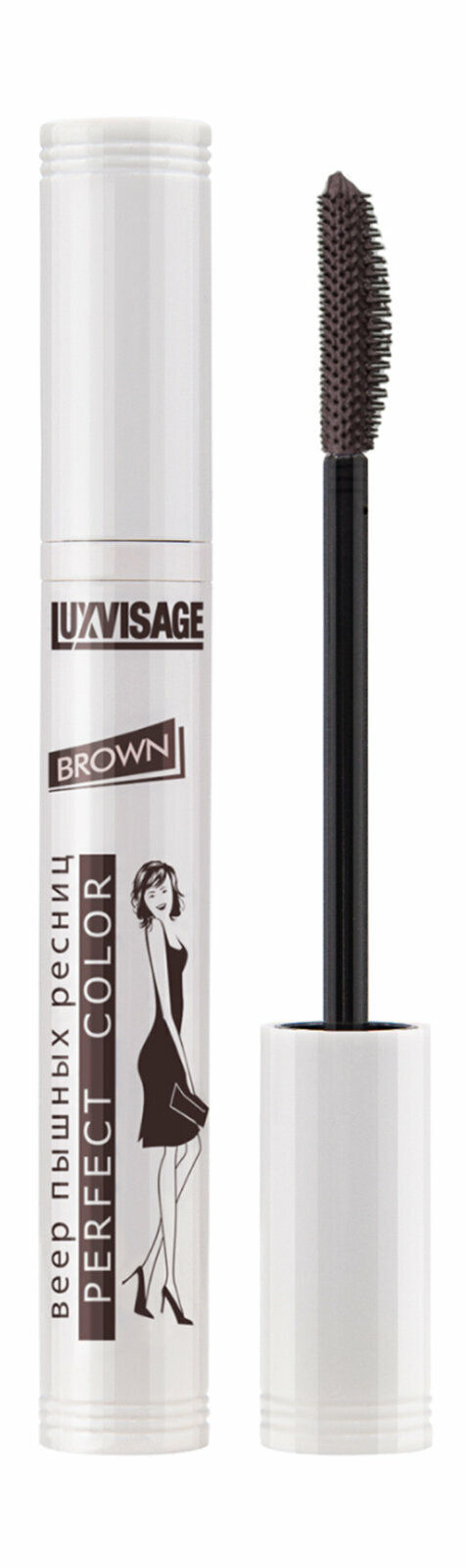 LUXVISAGE Тушь для ресниц PERFECT COLOR веер пышных ресниц коричневая, 9 мл