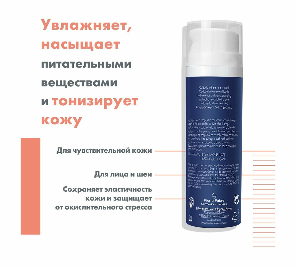 Avene Soin Hydratant Anti-Age Антивозрастная увлажняющая эмульсия для мужчин, 50 мл.