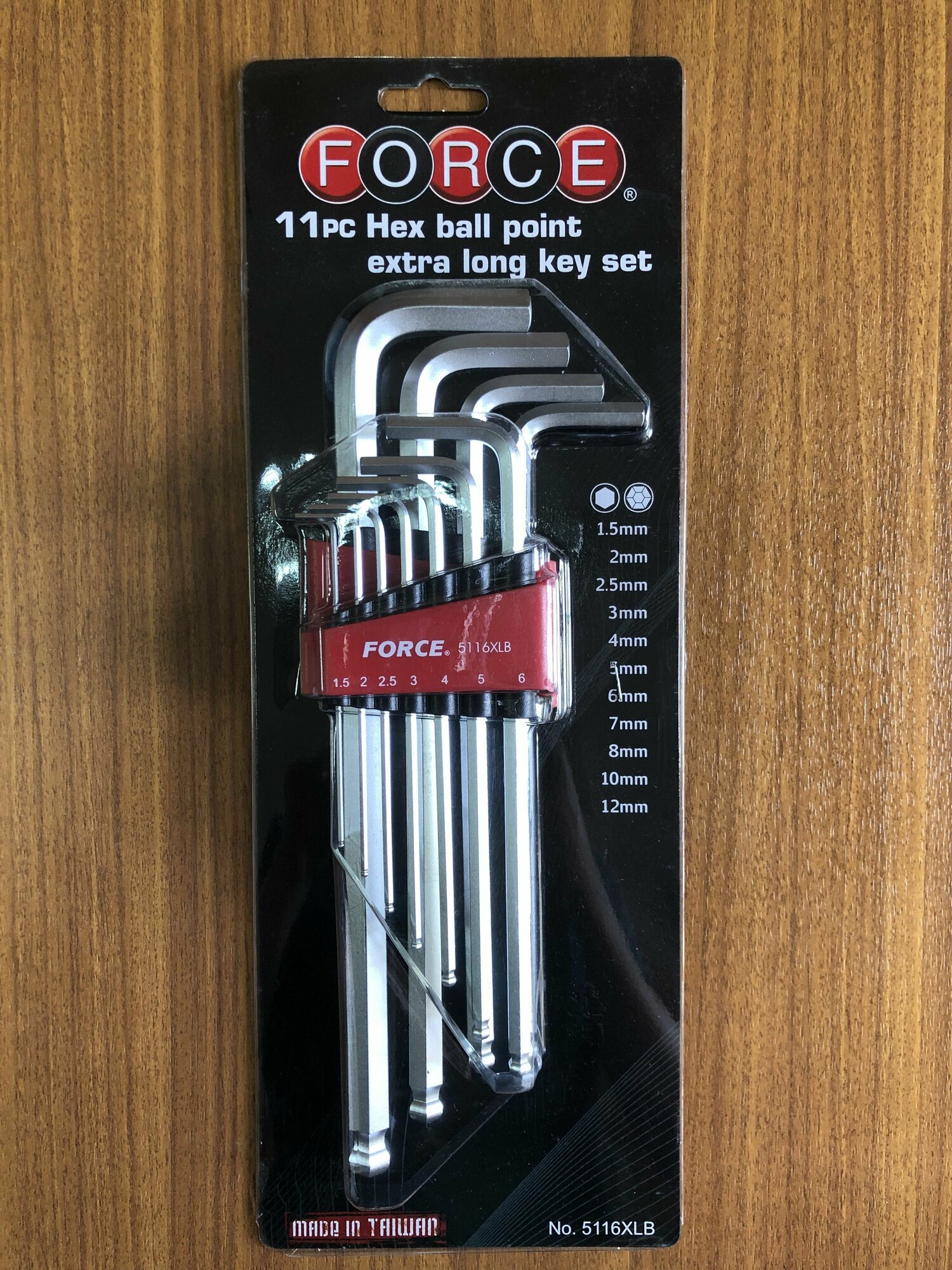 Набор длинных Г-образных ключей с шаром 1,5-12 мм, 11 предметов FORCE 5116XLB