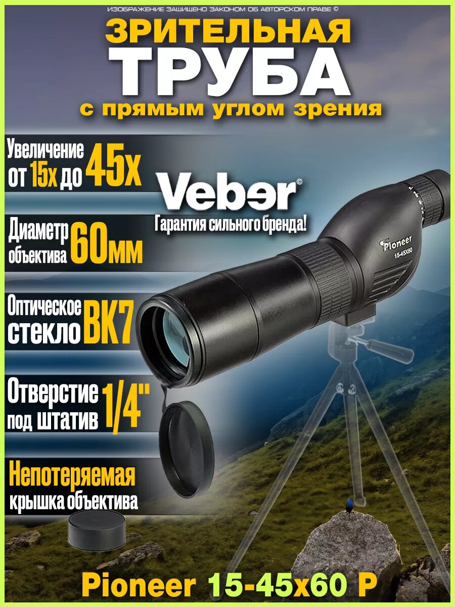 Ниже Вы можете прочитать отзывы на Зрительная труба для охоты и спорта Veber Pioneer 15-45x60 Р с прямым окуляром, ознакомится с подробными характеристиками, посмотреть интересные обзоры и фотографии на Зрительная труба для охоты и спорта Veber Pioneer 15-45x60 Р с прямым окуляром.
