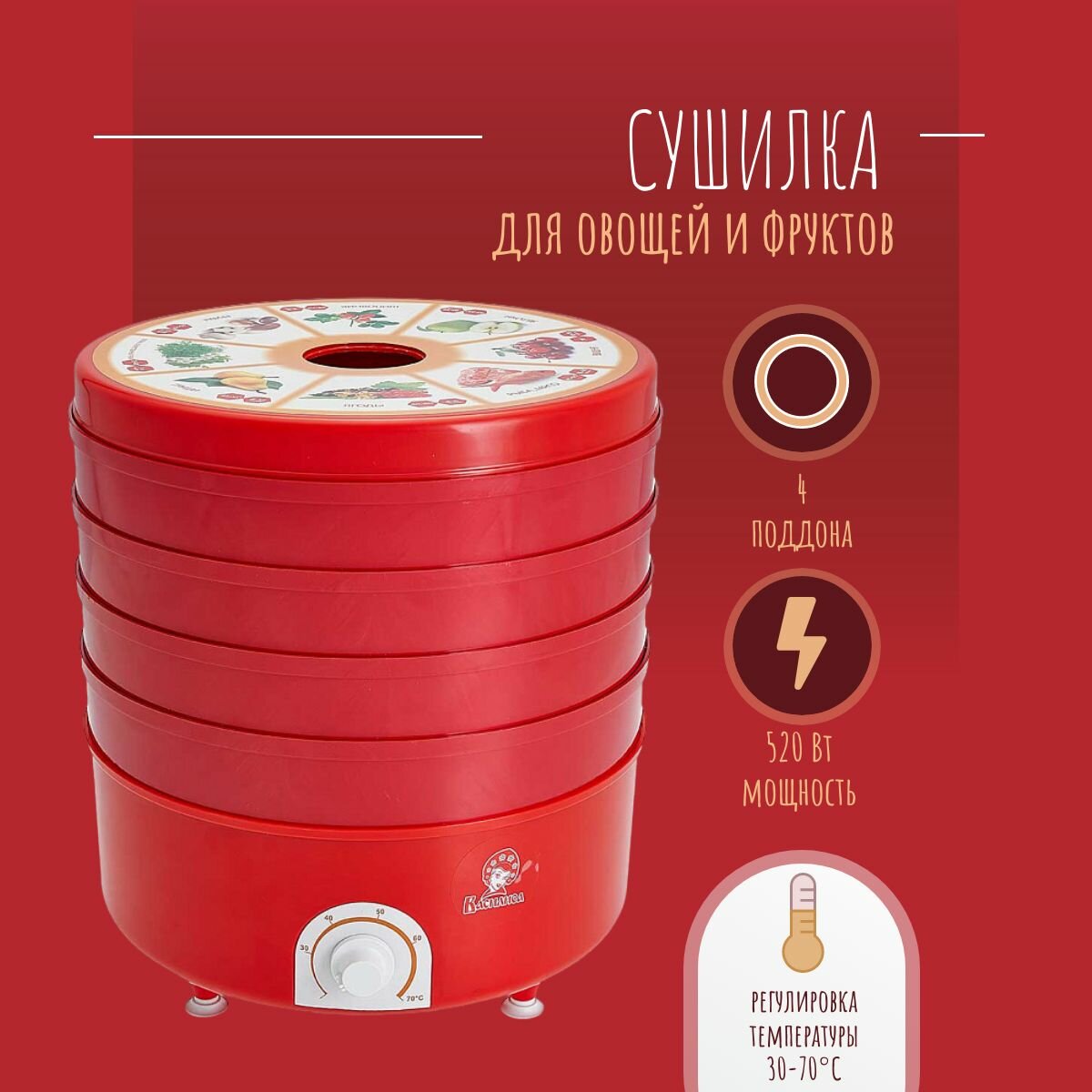 Сушилка для овощей и фруктов электрическая василиса СО3-520, 520 Вт, объем 14 л , красная с красными секциями