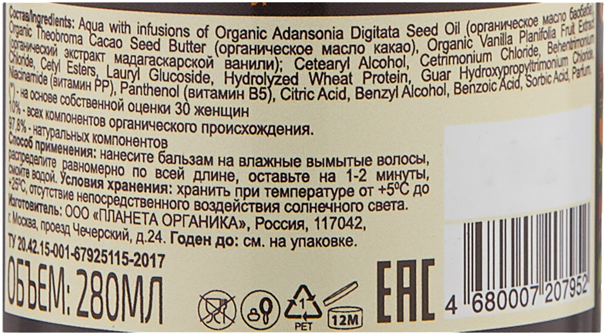Planeta Organica Бальзам для волос натуральный Organic baobab 280 мл интересное: