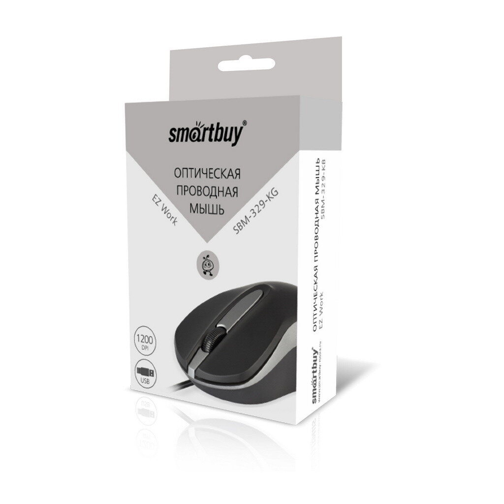 Мышь проводная оптическая Smartbuy ONE 329, 2 кн, 1200 dpi, USB, черно-серая, шнур 1,35м SBM-329-KG)