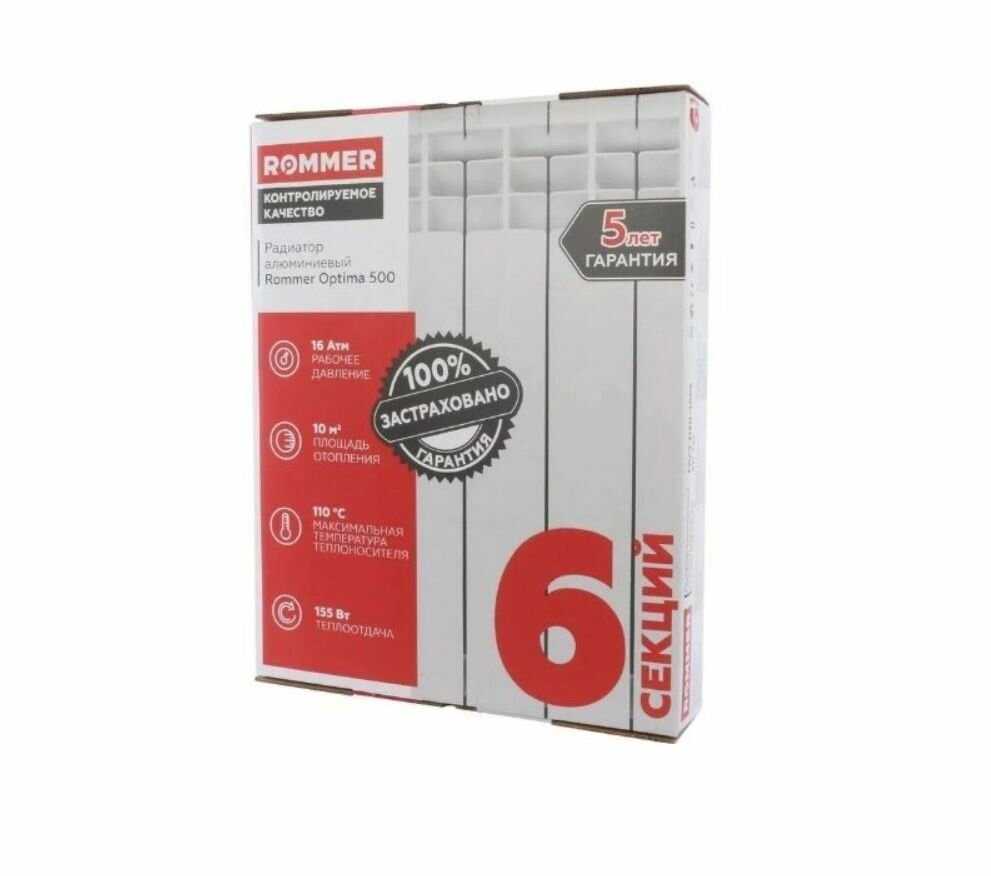 Радиатор алюминиевый Optima 500 6 секций RAL9016 (89557) RG008P2HS8PGOM Rommer