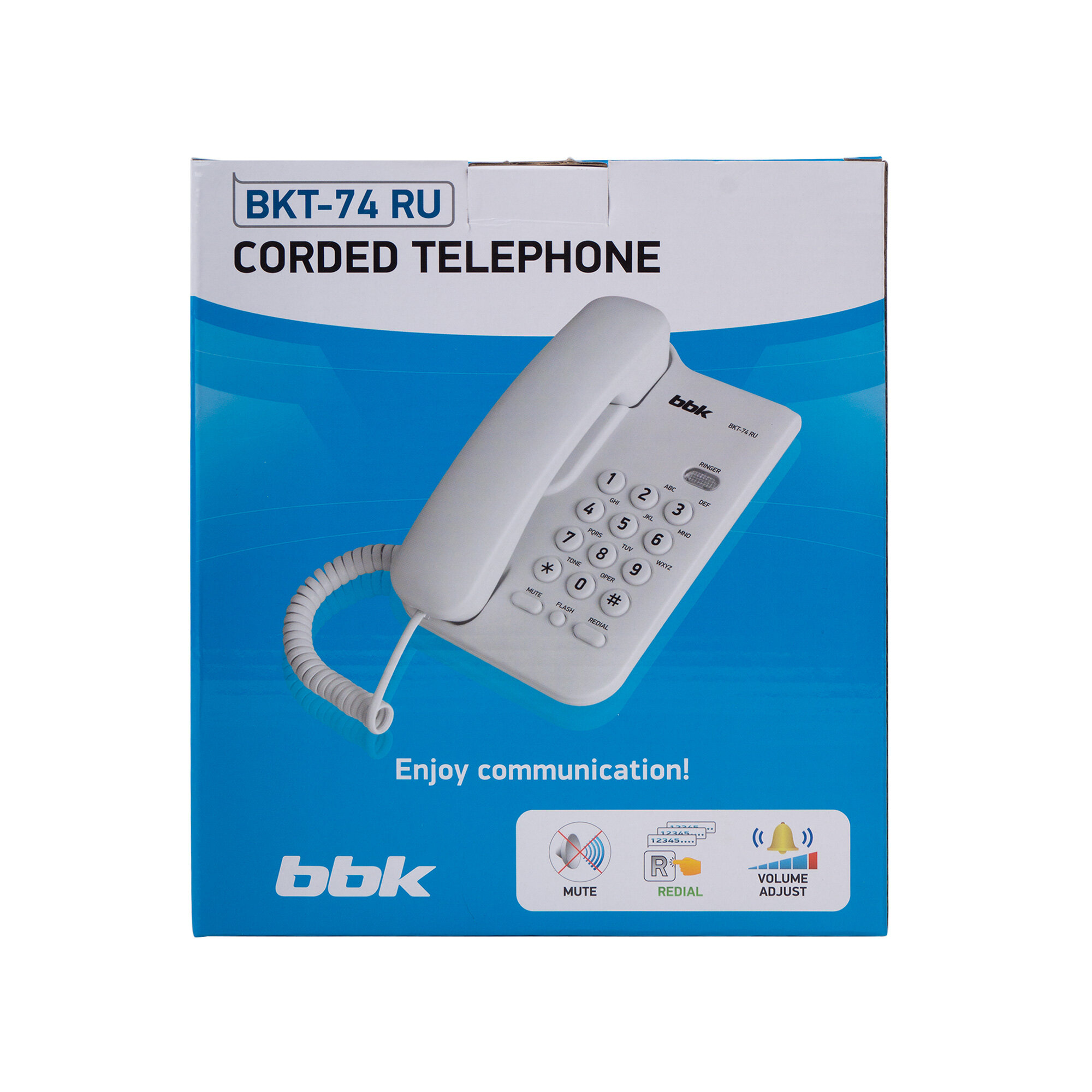 Телефон проводной BBK BKT-74 белый, импульсный и тоновый набор, возможность крепления на стену