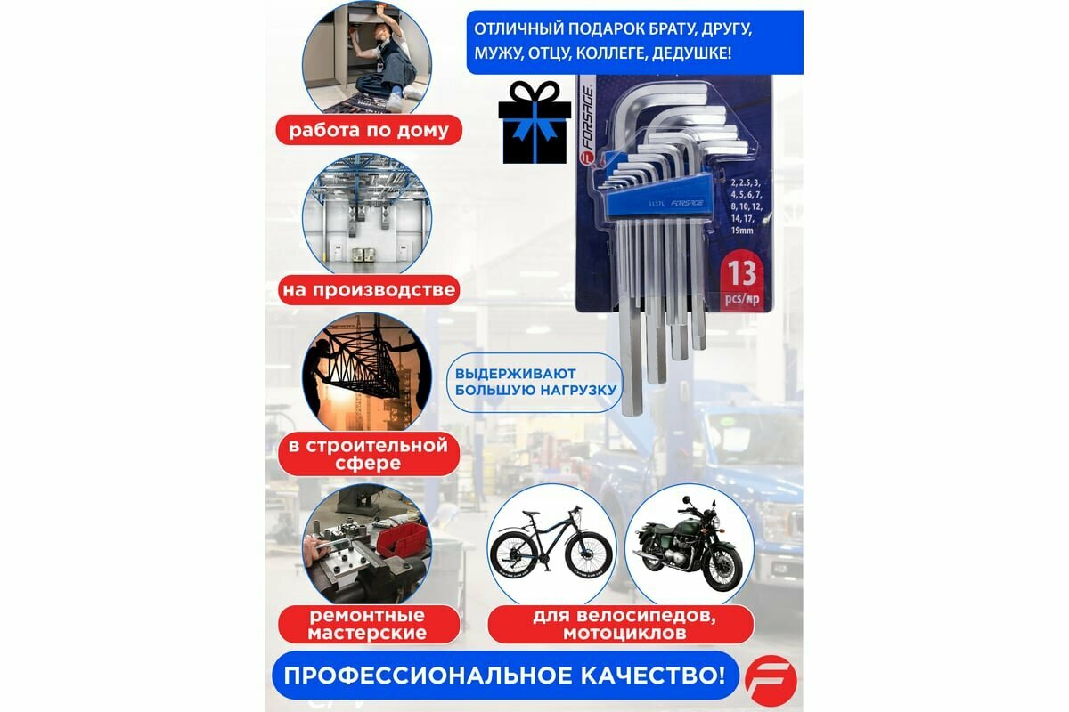 Набор ключей Г-образных 6-гранных длинных 13пр. (2, 2.5, 3-8, 10, 12, 14, 17, 19мм)в пластиковом держателе Forsage F-5137L интересное: