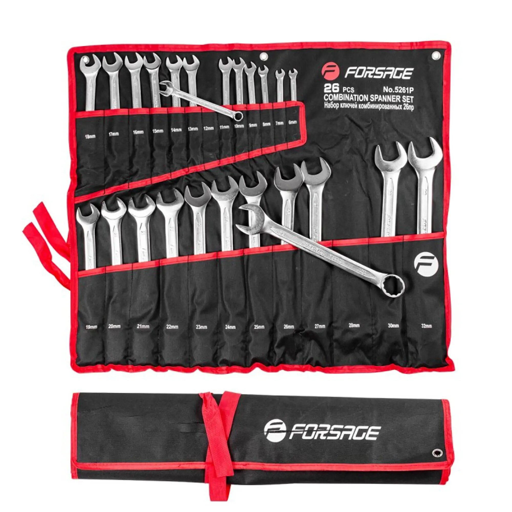 FORSAGE F-5261P Набор ключей комбинированных, 26 пр: 6-30, 32 мм, на полотне
